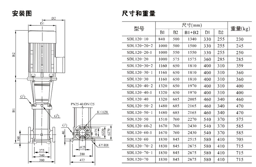 SDL120/SDLT120為配用標準電機的非自吸立式多級離心泵,電機軸和泵軸用聯(lián)軸器直接聯(lián)接,把拉桿用螺母將外筒,過流部件固定在支架和進出水體之間,泵進出水口在泵底部的同一直線上。泵可根據(jù)需要配置智能保護器,對泵的干轉(zhuǎn)、缺相、過載等進行有效的保護。